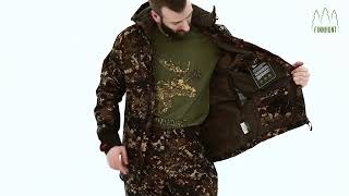 Водонепроницаемая мембрана, водонепроницаемые молнии YKK и проклеенные швы делают куртку и брюки водонепроницаемыми, но дышащими. Бесшумная и высокотехнологичная ткань 100% полиэстер. Подкладка комбинированная: флис/нейлон, 100% полиэстер. Утеплитель: IsoSoft 180 г/кв.м.